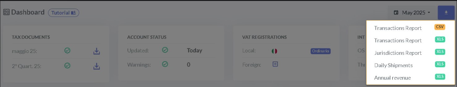 * **Transactions Report (CSV or XLS):** This report contains all transactions for sales and returns to customers with all details useful for tax compliance.