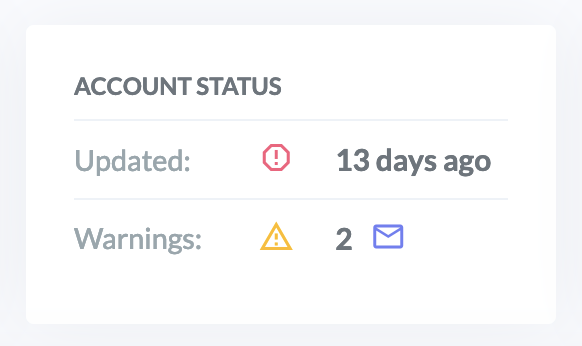If the account is out of date a red warning icon is shown. In this case it is possible that there are problems with the payment of the subscription or that it is necessary to renew the authorization to access the sales data.