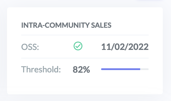 The first line shows whether or not the seller has joined the OSS scheme and the date of joining. The second row shows the percentage of intra-EU sales compared to the €10,000 threshold.