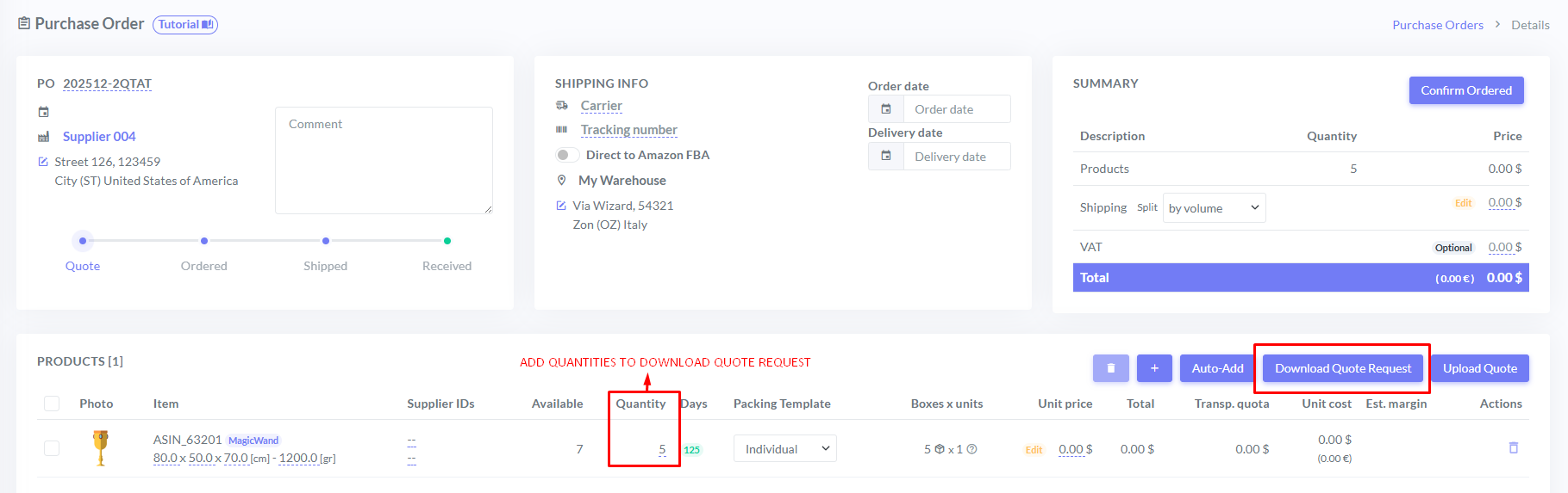 Path: [**Inventory >> Purchase Orders >> Order details**](https://app.zonwizard.com/analytics/supplier-order/)