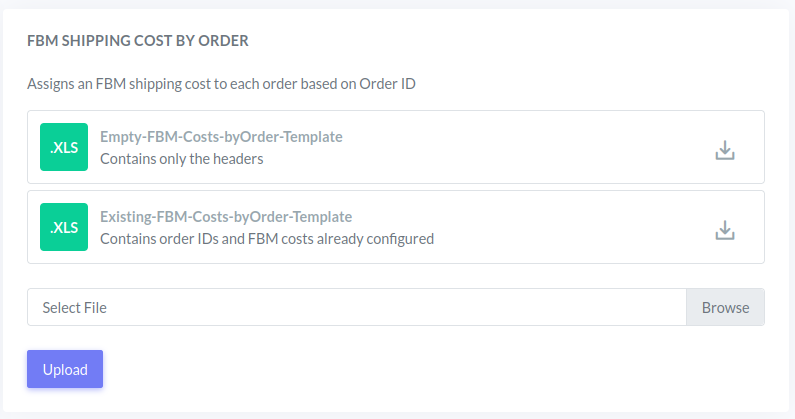 In this section, you can upload shipping costs for every order shipped with FBM logistics.