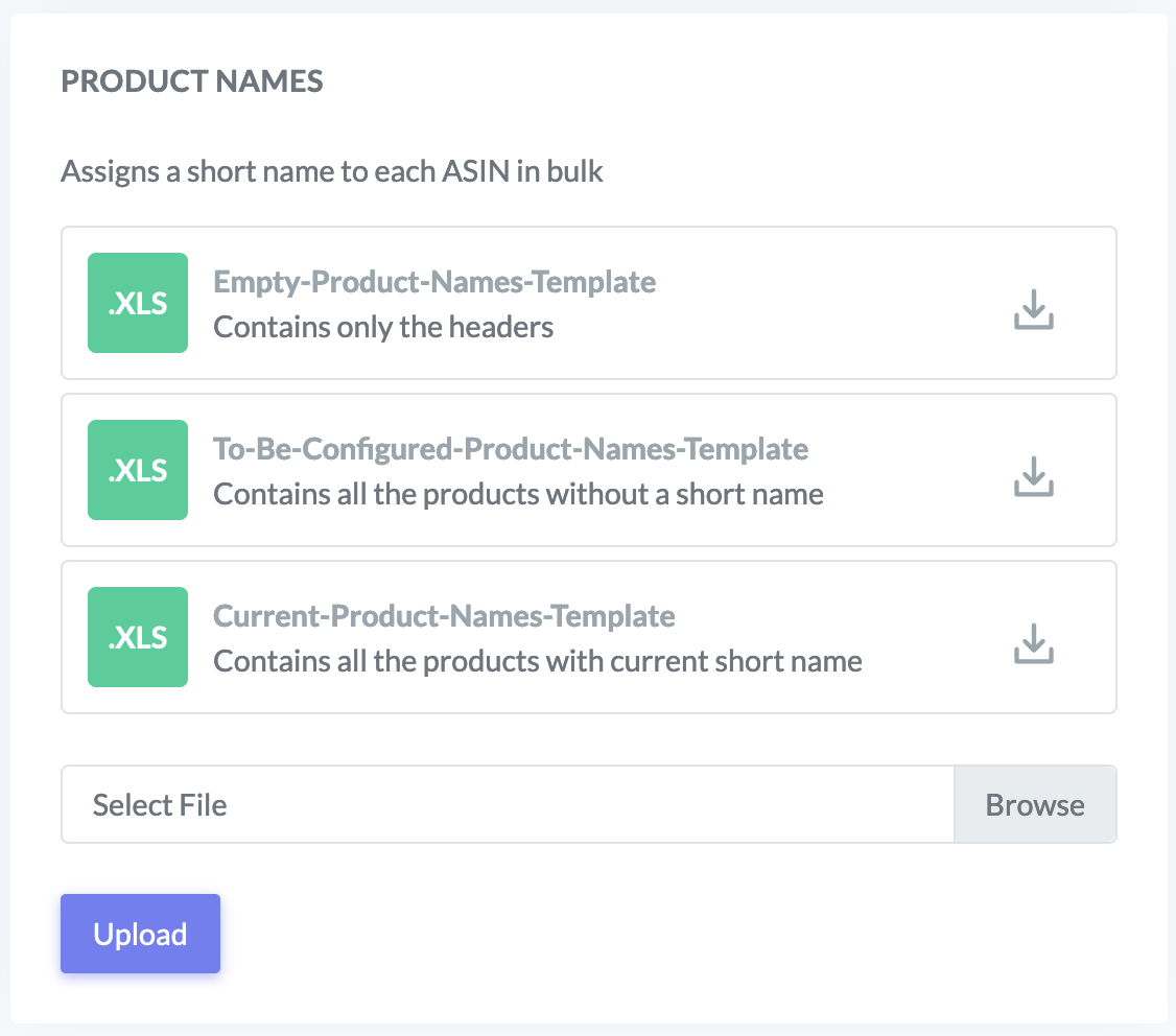 In this section, you can upload short names to assign to your products.