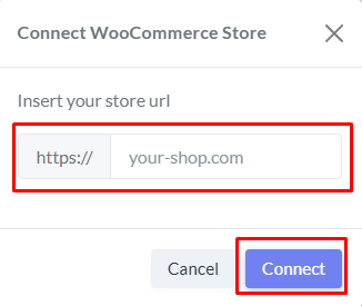 You will be redirected to a form where you will need to **enter your store URL** and click **"Connect."**