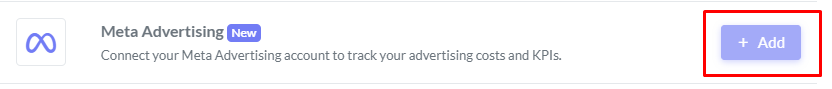 To connect a Meta Advertising account, click the **"Add"** button in the Advertising Integrations tab.